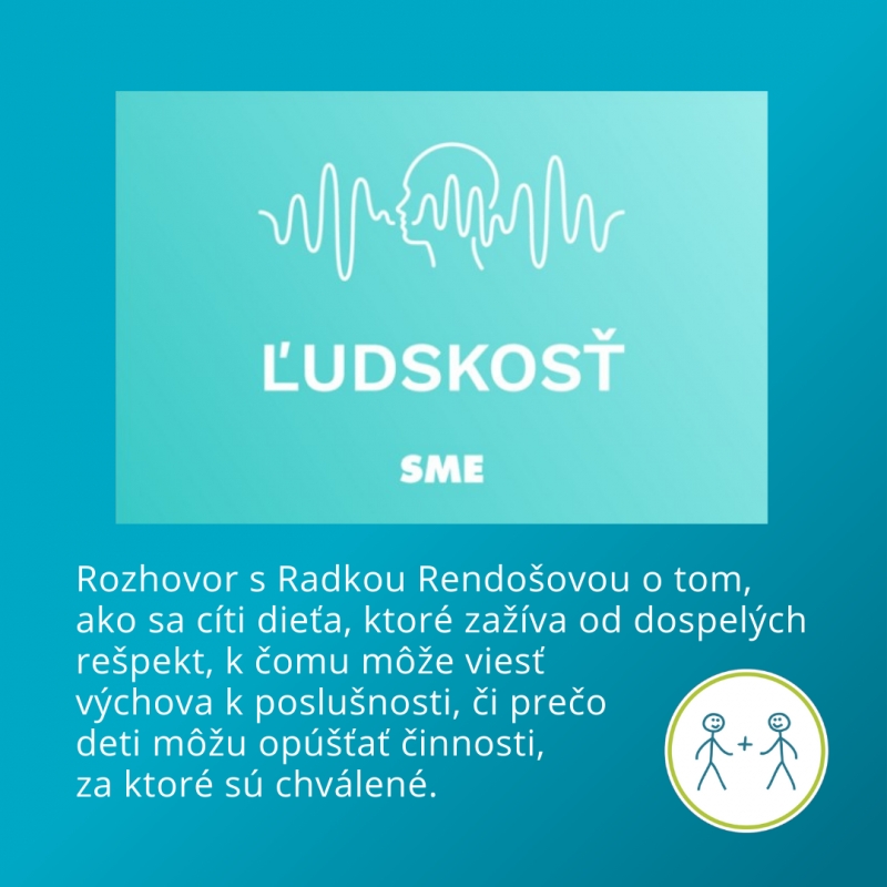 Radka Rendošová v podcaste Ľudskosť hovorí aj o tom, ako sa cíti dieťa, ktoré zažíva od dospelých rešpekt, k čomu môže viesť výchova k poslušnosti, či prečo deti môžu opúšťať činnosti, za ktoré sú chválené.